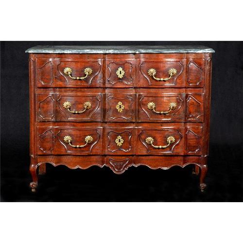 French Louis XV Period chest from Provence, made of walnut. The hardware and the marble top are original. One of the finest of its kind.