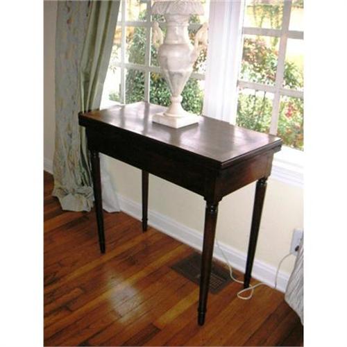 <table width="100%" border="0" cellspacing="0" cellpadding="4"><tr><td><em> </em></td></tr><tr> <td width="100%"> Exceptional French Louis XVI period game table in solid walnut. From Paris, c. 1790. A beautiful consold piece that opens into a felt covered playing surface with storage underneath. Wonderfully patined period piece. </td></tr><tr> <td> </td></tr><tr> <td>Reference #: E5</td></tr><tr><td>Condition:excellent</td></tr><tr><td>Year:1790</td></tr><tr><td>Country:France</td></tr><tr><td>Height:30</td></tr><tr><td>Depth:16</td></tr><tr><td>Width:32</td></tr><tr><td>Title:French Louis XVI Period Game Table</td></tr><tr><td>Style:Louis XVI</td></tr><tr><td>Materials:solid walnut</td></tr><tr><td>Location:Austin, TX</td></tr></table>