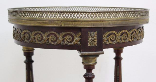 Gilt metal mounts and gallery. Approx. 30" H x 12 1/2" x 12 1/2".