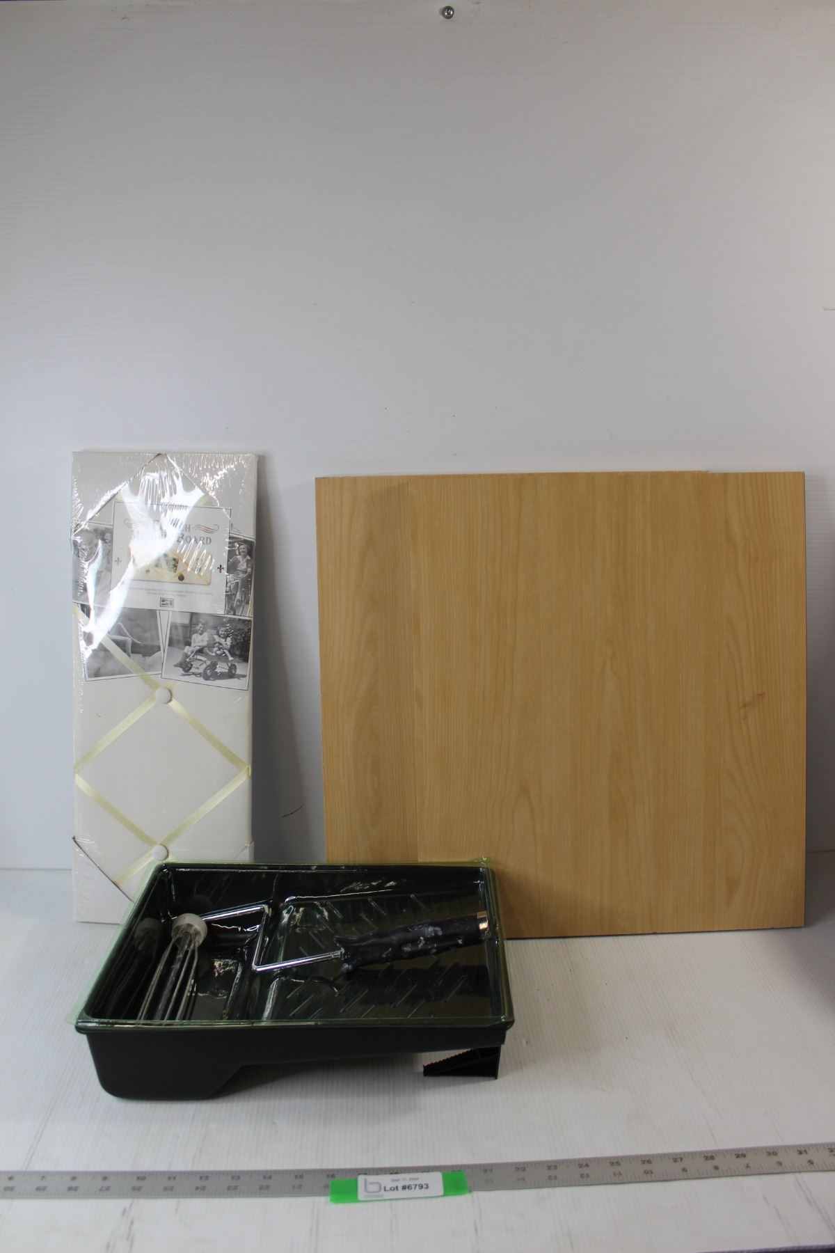 French Memory Board, (2) Wooden Boards - 17" x 20", (2) Paint Roller Pans, Paint Roller