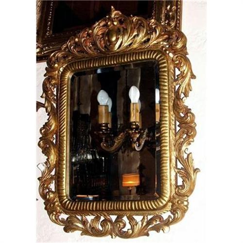 A beautiful heavily carved French Mirror, exquisite detailed work, and Gold leaves gilding , measuring 31 inches tall and 23.5 inches wide , A Fist Empire piece due to the extensive use of the Acanthus leaves but matches almost any French style from Luis XV to Art Nouveau , crystal is new. shipping within US $75