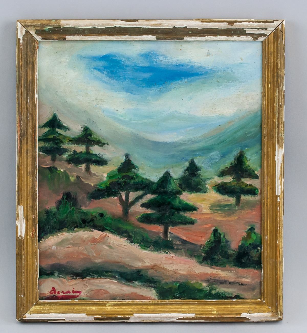 Oil on board, framed. Featuring misty landscape. Signed "derain" in the lower left corner. Frame in poor condition. 25 x 28.5 cm (9.8 x 11.2 in), Frame: 28 x 32 cm (11 x 12.5 in). Provenance: This lot carries limited provenance from a Southern Ontario estate
