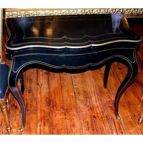 A fine French game table, Napoleon III style, with bronze ornaments , in very good conditions ,once closed can be used as sidetable measuring 17 inches D, 34 wide and 29 H , It is a period piece, in very good conditions. Shipping within US $325.