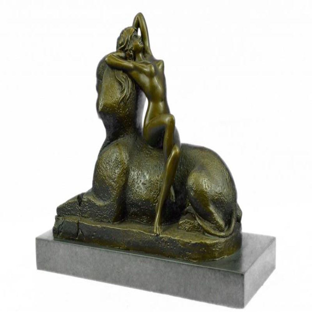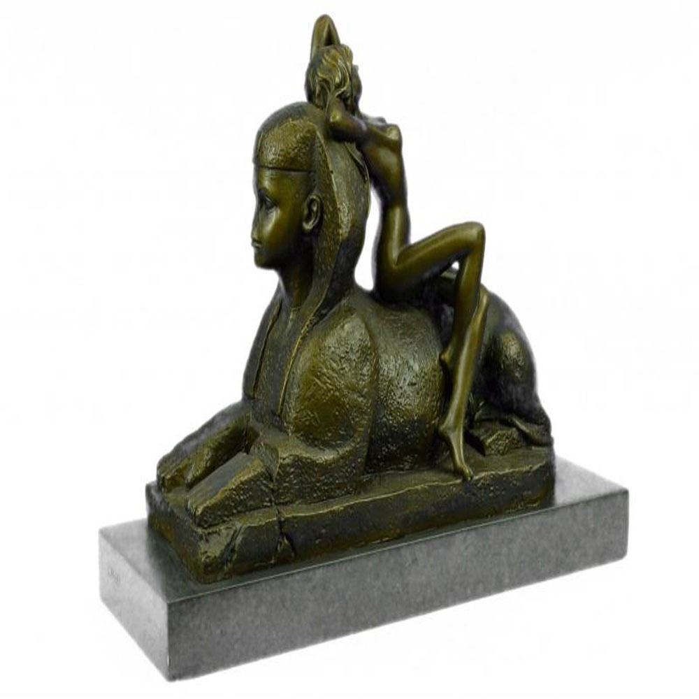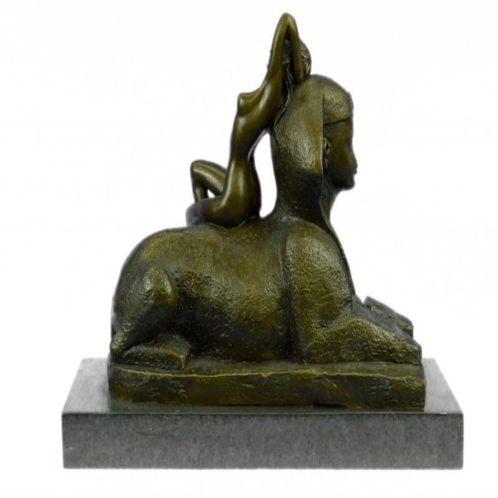 This exceptional French Art Nouveau figure calls upon classical influences. This stunning work captures a languid beauty lounging against a noseless sphinx, a nod to both the neoclassical tradition in French art and to the Egyptian fascination that blossomed during Napoleons empire. Exquisitely crafted and intriguing, figures such as this are highly desirable with collectors, especially those in such wonderful detailed. This Sculpture was crafted using the lost wax method. It rests on a marble base. Bronze Dimensions with Marble Base: Height 10 X Width 12 inches. Weight: 15 LBS.