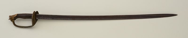 French Officer’s Model 1855 sword dated 1861 by Chateau Arsenal; fair to good condition; no scabbard, pommel cap has been removed; thumb area of guard is damaged; imported and used by both sides in the Civil War. Est.:$100-$200.