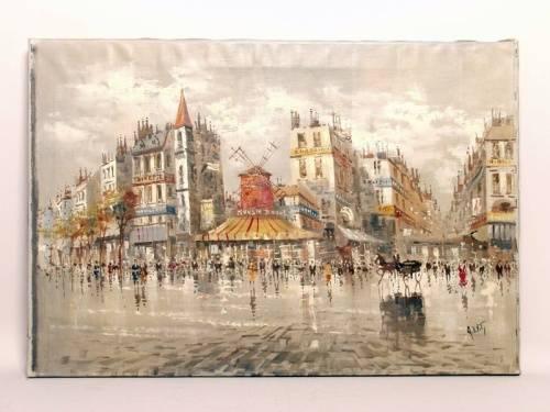 Parisienne Scene, Moulin Rouge in the Rain. Minor Tear.