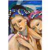 Oil on canvas, framed. Featuring a portrait of two female nudes. Signed Marie Laurencin on the upper right corner. Stamped FRANCE and 7OX'50 on verso. Canvas size: 69 x 48.5 cm (27.3 x 19.3 inches). Frame size: 77 x 57 cm (30.3 x 20.5 inches)