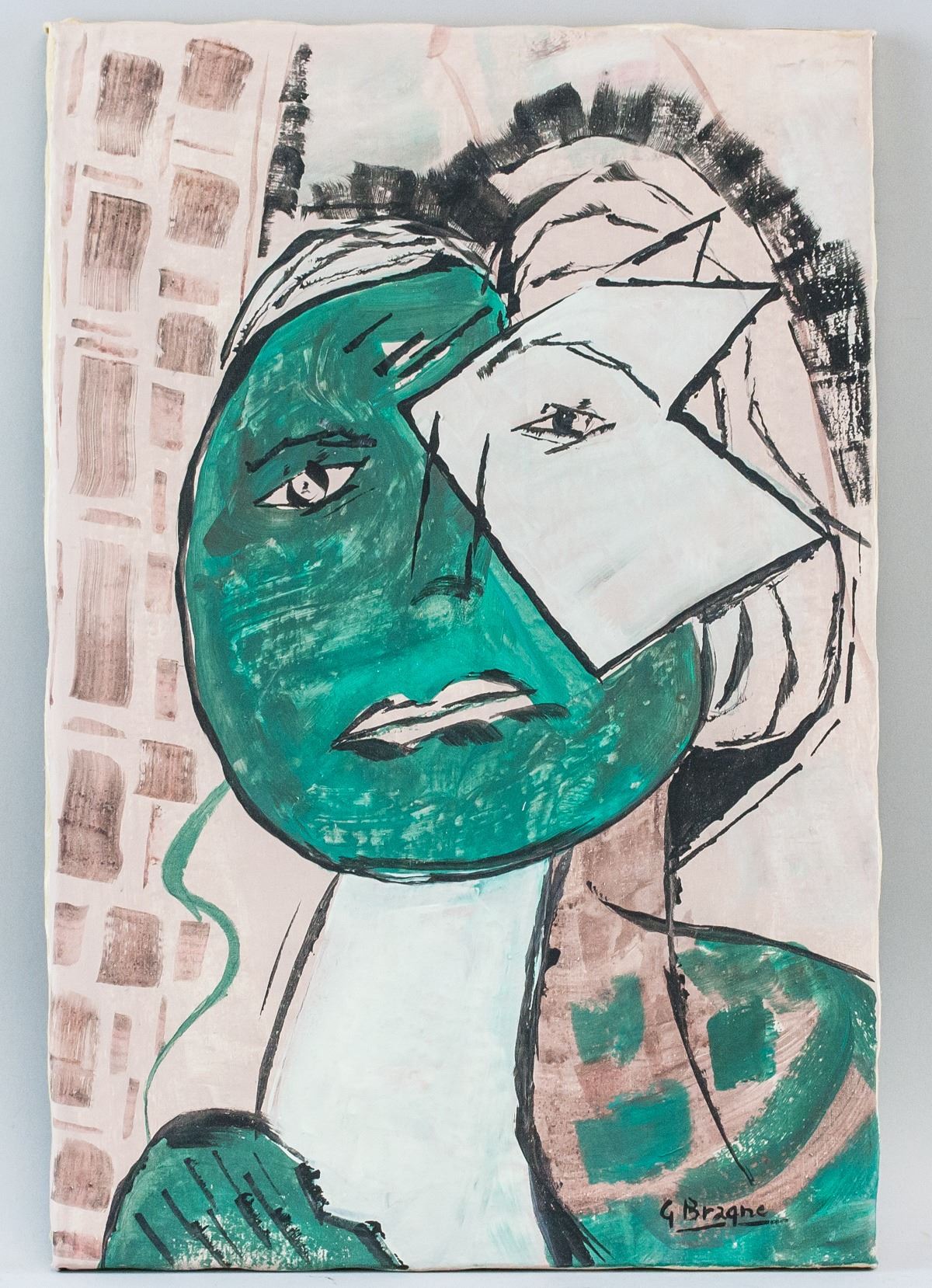 Oil on canvas. Featuring cubist portrait. Signed "G. Braque" in the bottom right corner. 51 x 34 cm (20 x 13.5 inch).