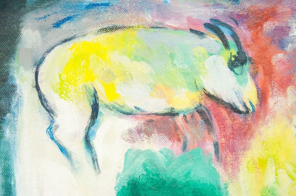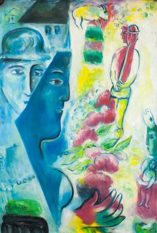 Oil on canvas. Featuring surrealist composition. Signed "M. Chagall" to the bottom left. 90 x 60 cm (35.5 x 23.5 inches).