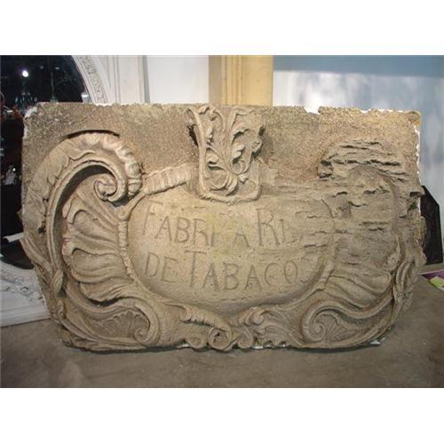 This is an impressive tabacco factory sign made for ''Carmen'' opera at the 2003 Orange Lyric Festival in Provence. Made in patinated polystirene, support in iron.