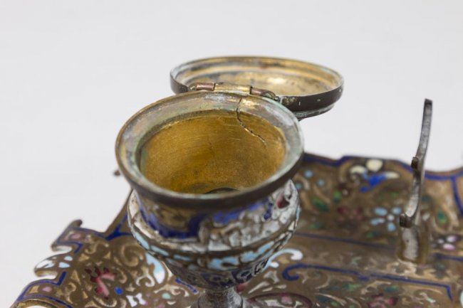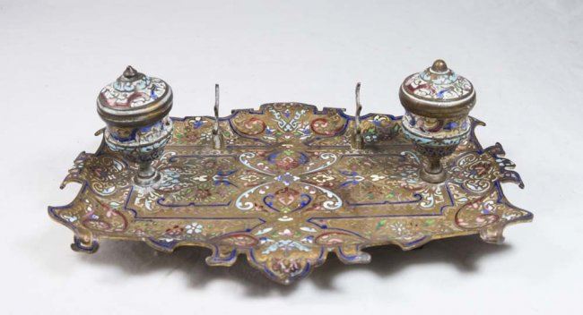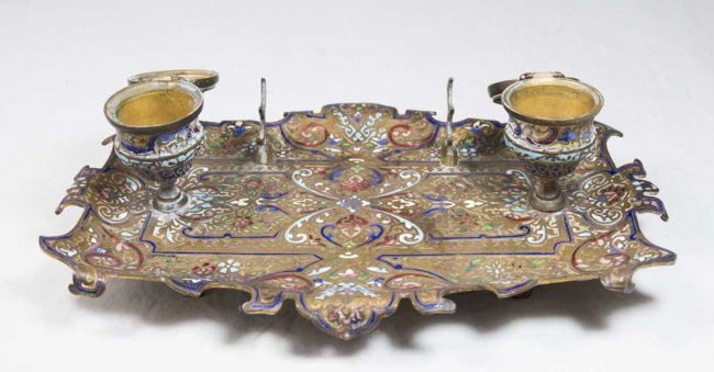 Enamel and gilt bronze. Approx. 3 3/4" H x 9 3/4" W x 6 3/4" D.