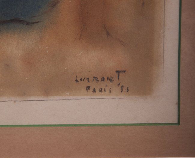 French Painting, 1955, signed by artist. Original on tempura paper. (Size: See last photo for measurement.)