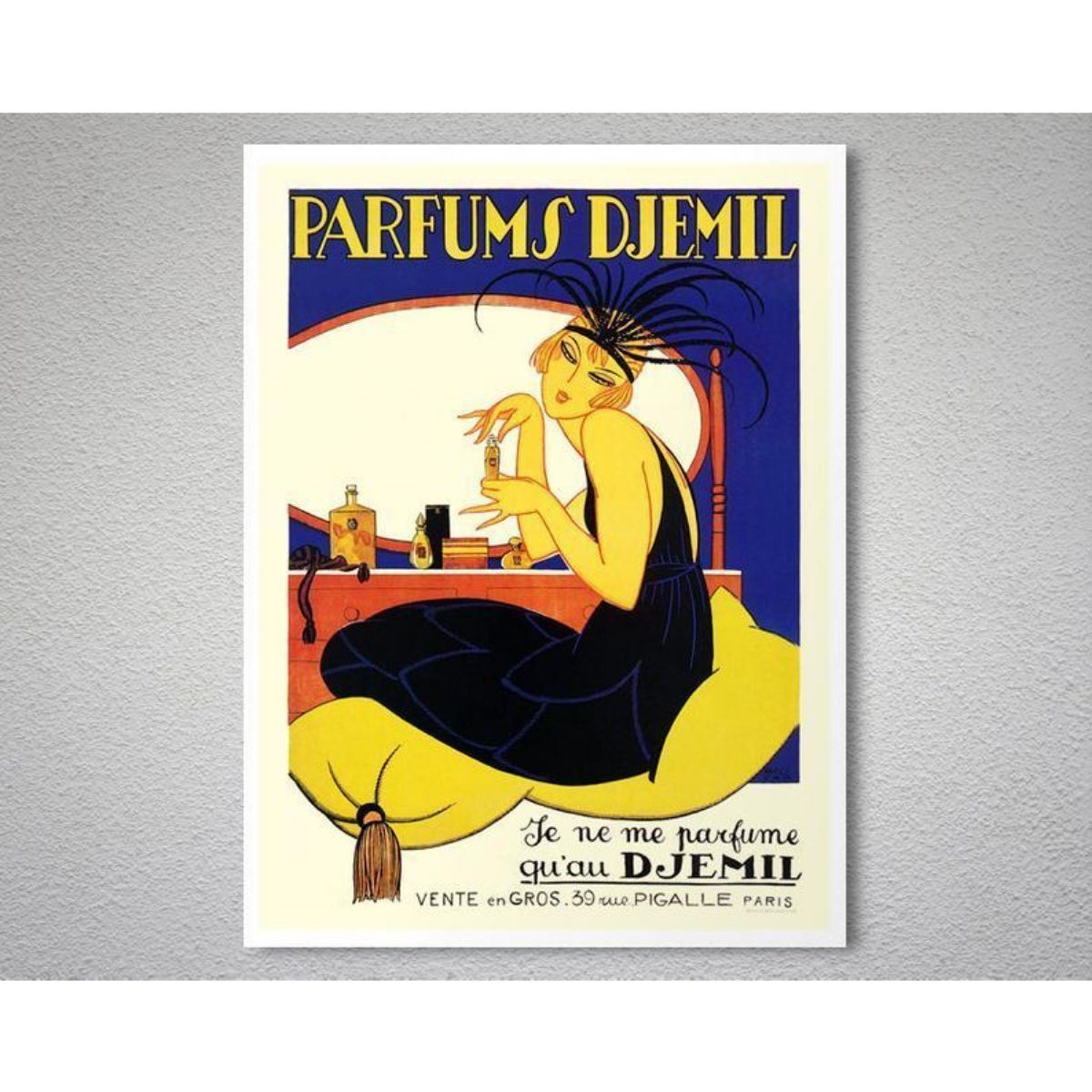 Modern recreation of a vintage French poster, ad for Parums Djemil. 11" X 14" printed on heavy poster stock.Â
