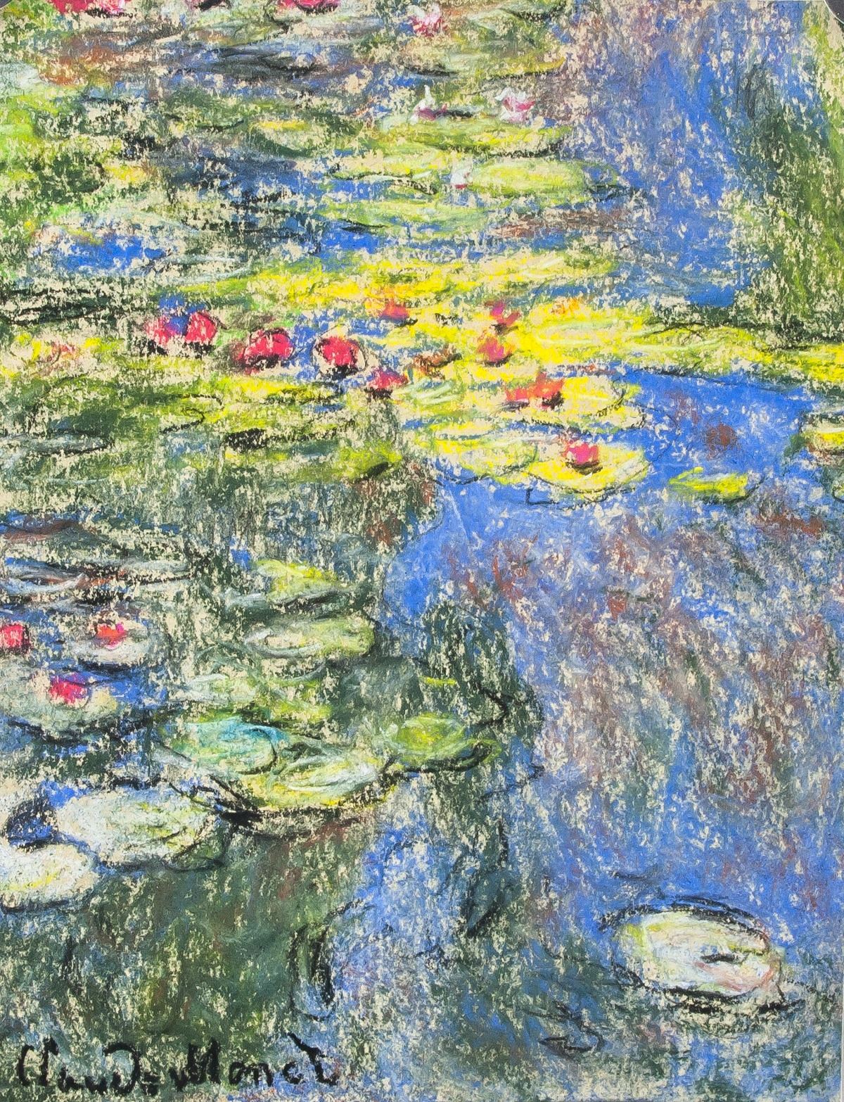 Pastel and gouache on paper, French Impressionist School, featuring louts pond, signed Claude Monet on the lower left corner, and stamped CM 62 on verso, 19.9 x 25.6 cm (7.8 x 10.1 inches). PROVENANCE: Private collection (Toronto, ON).