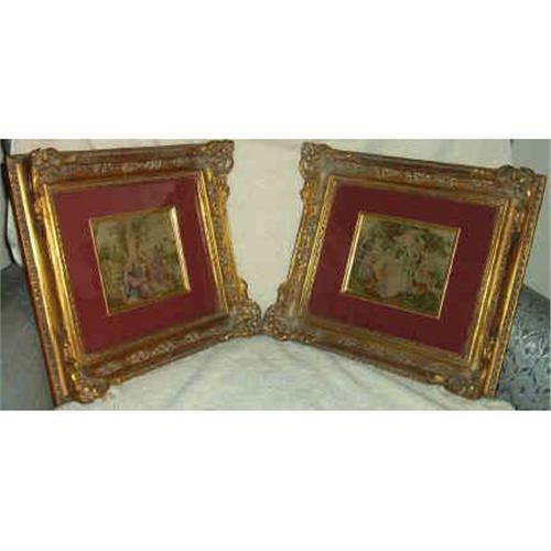 Framed Beautifully in 1991. Two sides of an exquisite petit point purse. Unbelievably fine work. Frames are wood and Gesso. Embroidered work measures 5.1/2" X 4.1/2" and the frames measure 13.1/2" X 11".