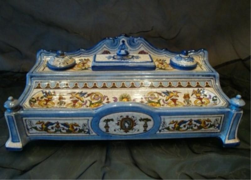 French Porcelain Inkwell for Desk, Height 5.1 InL x 13.4 In