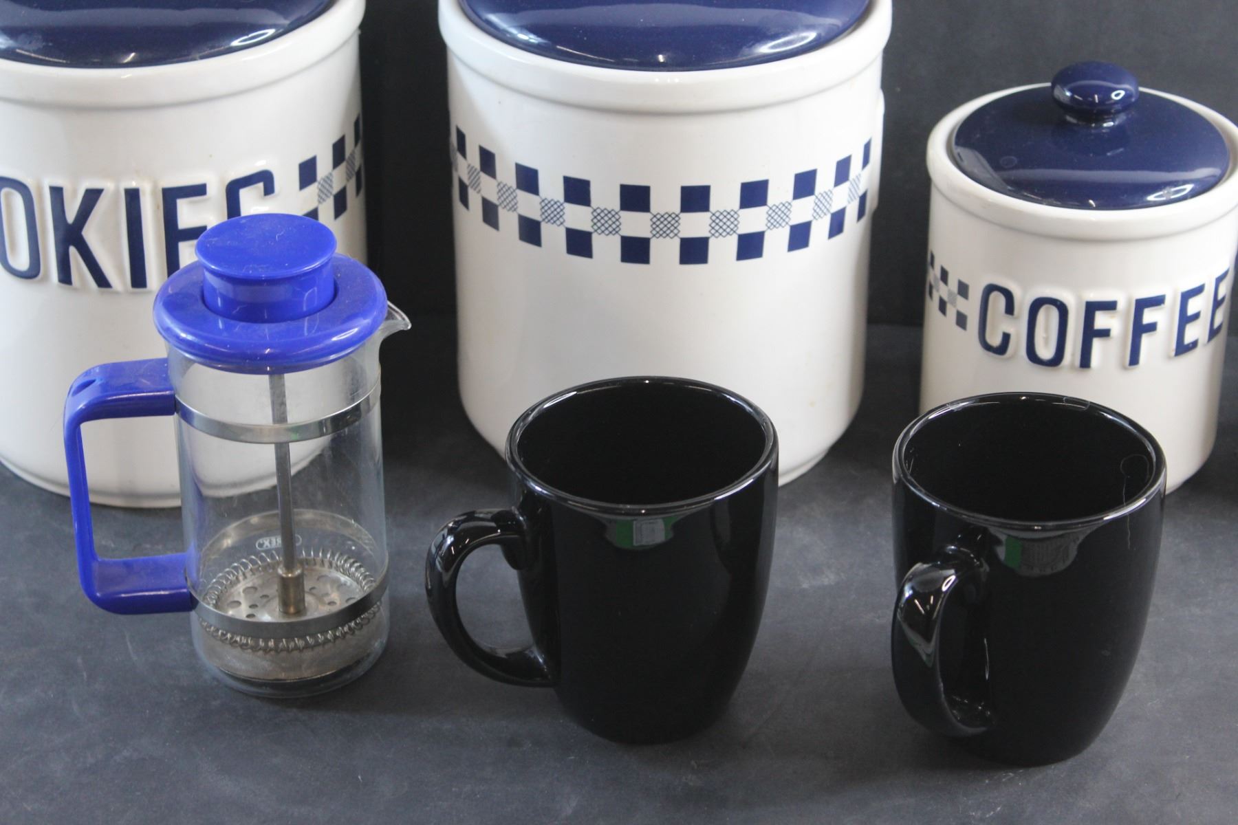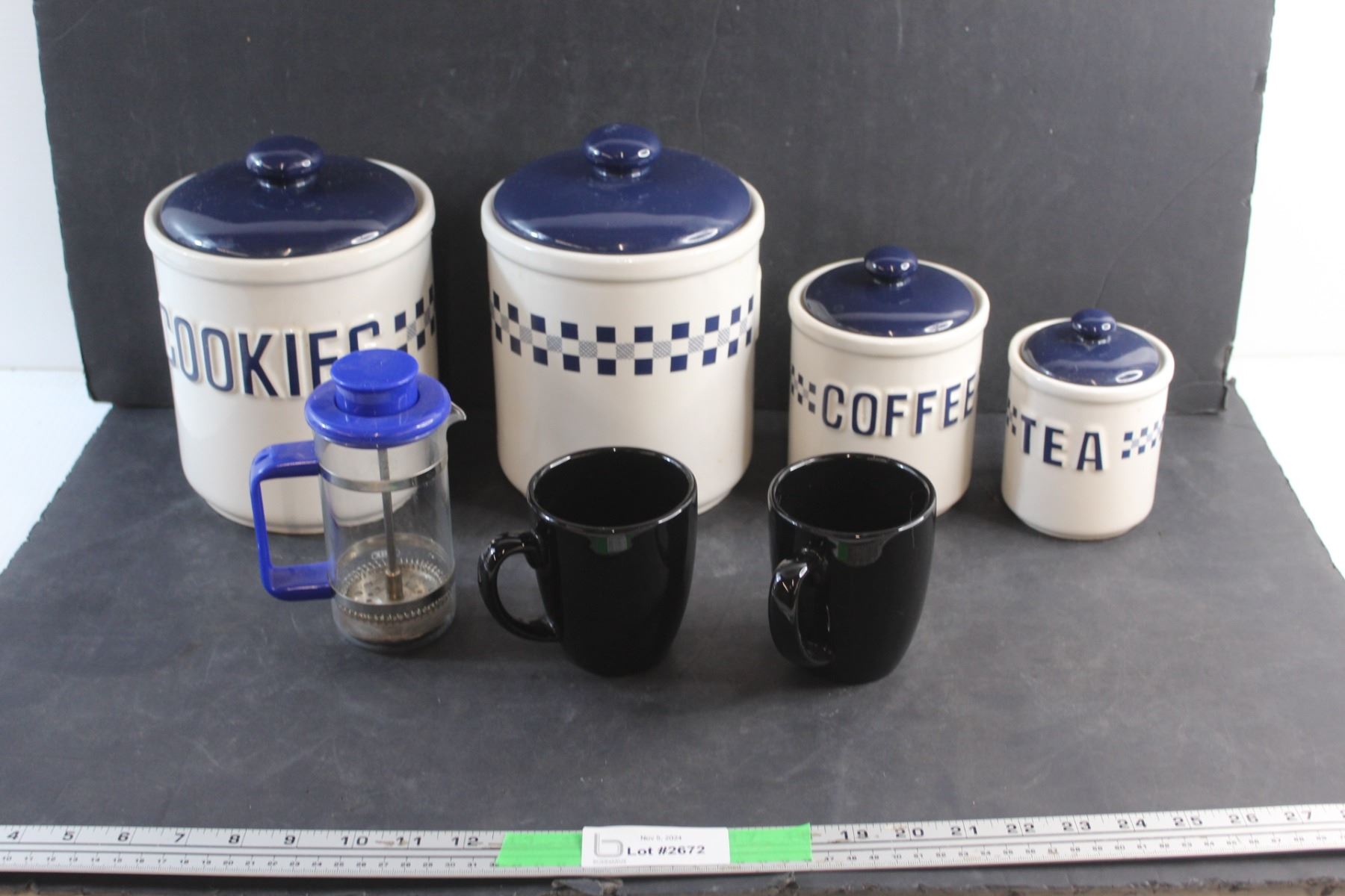French Press, (2) Cookie, Coffee & Tea Jars with Lids and (2) Mugs