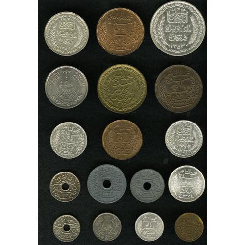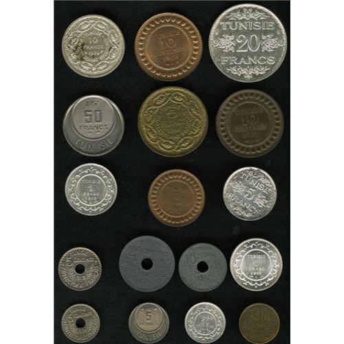 <B>French Protectorate Type Collection, </B></I>a choice selection of seventeen coins including: KM229 10 Centimes 1904, choice brilliant UNC, KM235 5 Centimes 1907, UNC, KM236 10 Centimes 1907, UNC, KM237 50 Centimes 1915, cleaned XF, KM238 Franc 1912, XF, and 1916, superb BU, KM242 5 Centimes 1919, AU, KM246 50 Centimes 1941, toned AU, KM258 5 Centimes 1938, UNC, KM261 5 Francs 1353H, AU, KM263 20 Francs 1353H, choice brilliant UNC, KM265 10 Francs 1939, toned prooflike UNC, KM267 10 Centimes 1942, nice UNC, KM-E26 20 Centimes 1945 ESSAI, UNC with luster on the reverse, very scarce, KM273 5 Francs 1946, AU, KM277 5 Francs 1957, UNC, and KM275 50 Francs 1957, XF. <B>Sold as is, no return lot.</B></I>