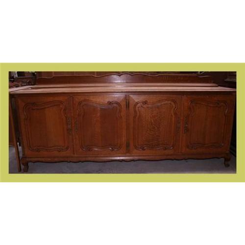 </STRONG>Title: 1950 French Provincial Sideboard Carved</STRONG><P>Item #: 6-721A-0</P><P>Comment: Very pretty curves and lots of storage space make this a special piece!</P><P>Condition: Normal wear due to age and use, but in overall great condition.</P><P>Dimensions (in.): 42.5H 98W 21D </P><P>Age (ca.): 1950</P><P>Origin: France</P><P>Style: Provincial</P><P>Material: Oak</P><P>Object: Sideboard</P><P>Additional Detail 1: Carved</P><P>Piece Type: Sideboards</P>This piece is eligible for FREE SHIPPING within the Continental United States. Shipments generally take between 2-10 weeks, depending on shipping company used. Shipments measuring less than (inches) 30 x 47 x 84 and weighing less than 100 lbs per box or item may be shipped via Greyhound Buslines, at the discretion of EuroLux Antiques. Shipments using Greyhound will require the customer to pick up the piece at their nearest Greyhound Bus Station (within 40 miles of customer's home). All shipments include Insurance. Additional assembly, extra packing or crating charges may apply in limited instances. Please email for details.</P> #NTR# French Carved Sideboard Buffet Credenza Server Hutch Provincial Oak