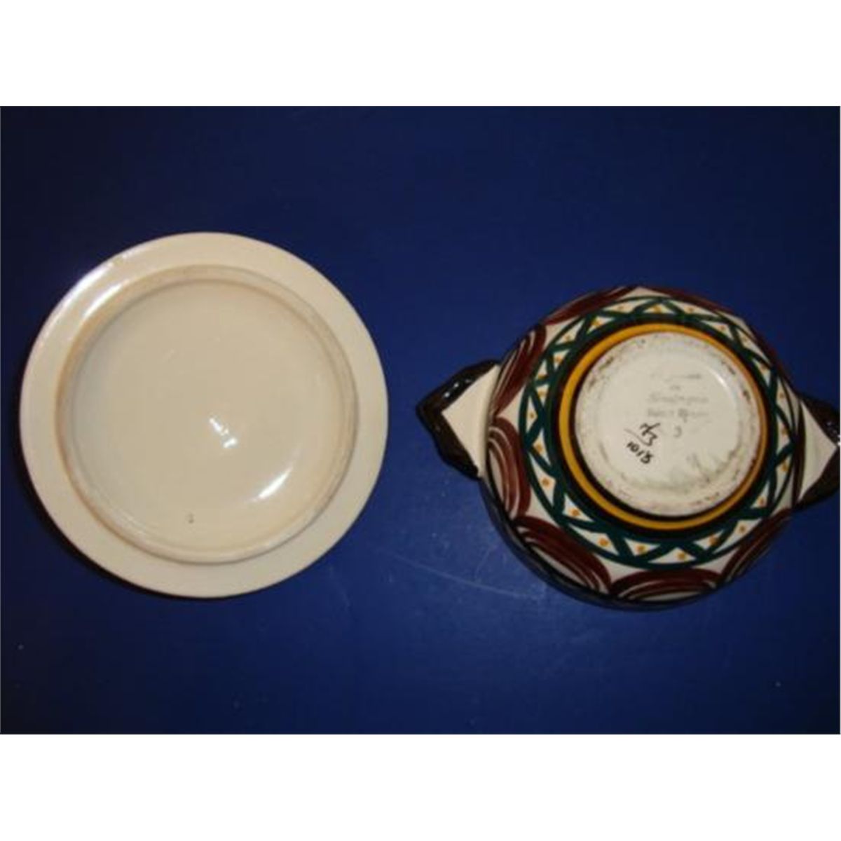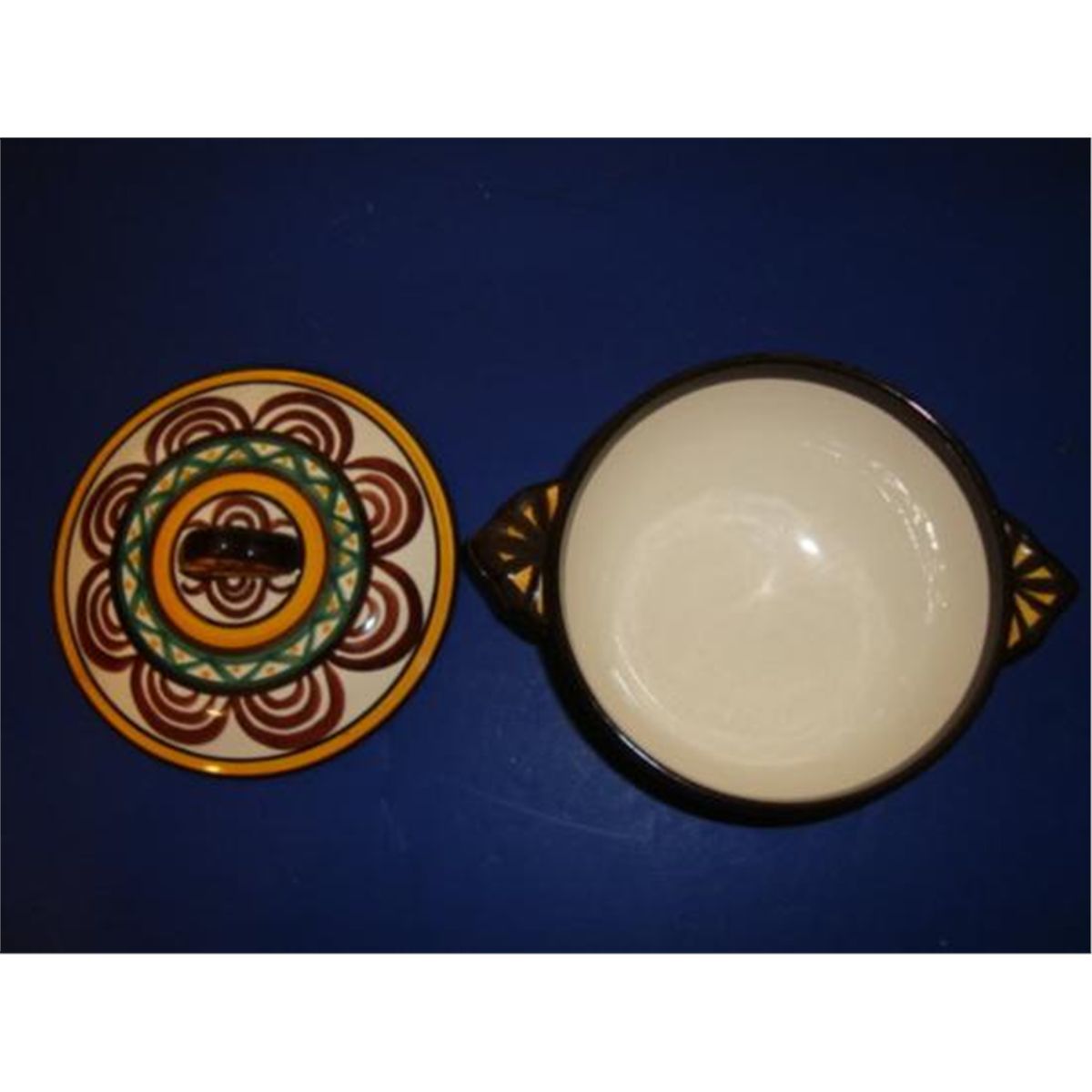 Highly collectible, Authentic French Quimper HB tureen with its lid. This piece was hand-made and hand-painted by the artist. You can see on the picture, the signature HB. Excellent condition (No cracks, no chips). Founded in Quimper in 1690, the HB-Henriot Manufacture has always innovated and worked with artists since this date. HB-Henriot is wellknown all over the world for its know-how: the "Quimper paint touch" and the tradition of producing and hand-painting every piece in-house as well as the creation of its own molds. Lovely piece for your collection ! We ship from Texas (not from France)! h-4.25"/ w-6.75"/ d-5"