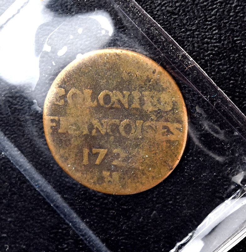 French Regime "Colonies Françoises", 9 Deniers, 1722H, Br.506, certified by ICCS F-12. This example has nice colour.