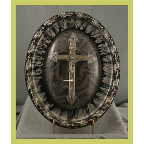 <tr><td>Title:French Religious Crucifix Framed Convex Glass</td></tr>