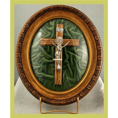 <tr><td>Title:French Religious Crucifix Framed Convex Glass</td></tr>