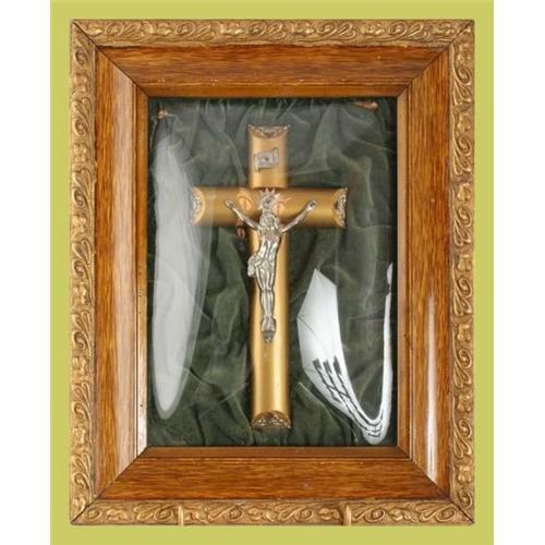 <tr><td>Title:French Religious Crucifix Framed Convex Glass</td></tr>