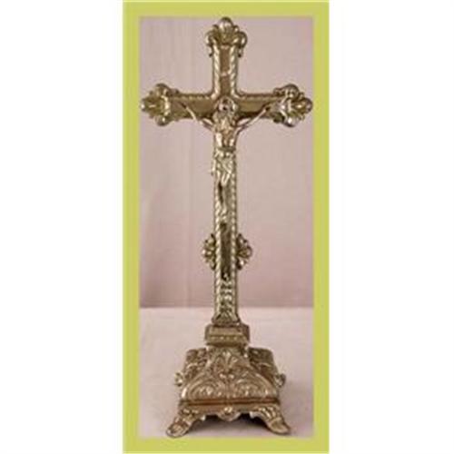 <tr><td>Title:French Religious Crucifix Standing Ornate Fleur</td></tr>