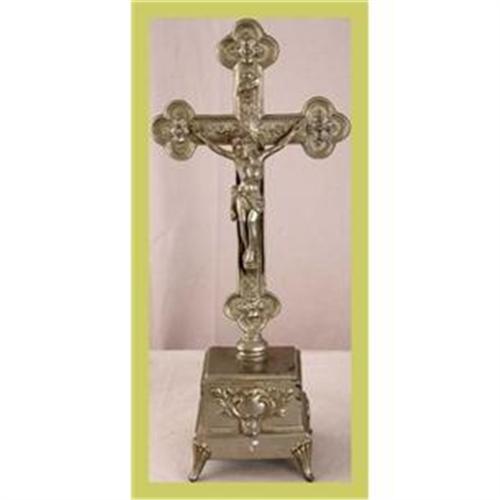 <tr><td>Title:French Religious Crucifix Standing Ornate Jesus</td></tr>