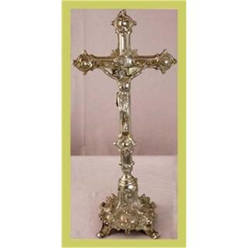 </STRONG>Title: 1950 French Religious Crucifix Rococo Standing</STRONG><P>Item #: 7-210-0</P><P>Comment: A beautiful piece that adds charm to any room!</P><P>Condition: In overall great condition!</P><P>Dimensions (in.): 14H 6.25W 4D </P><P>Age (ca.): 1950</P><P>Origin: France</P><P>Style: Religious</P><P>Material: Nickel-Plated</P><P>Object: Crucifix</P><P>Subject: Rococo</P><P>Additional Detail 1: Standing</P><P>Piece Type: Religious Items</P> #NTR# French Standing Rococo Crucifix Religious Nickel-Plated