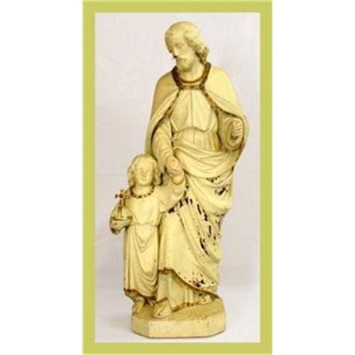 </STRONG>Title: 1930 French Religious Sculpture Joseph & Jesus </STRONG><P>Item #: 3-306-0</P><P>Dimensions (in.): 42H 15W 13D </P><P>Age (ca.): 1930</P><P>Origin: France</P><P>Style: Religious</P><P>Material: Plaster</P><P>Object: Sculpture</P><P>Subject: Joseph & Jesus</P><P>Piece Type: Religious Items</P>French Joseph & Jesus Sculpture Religious Plaster