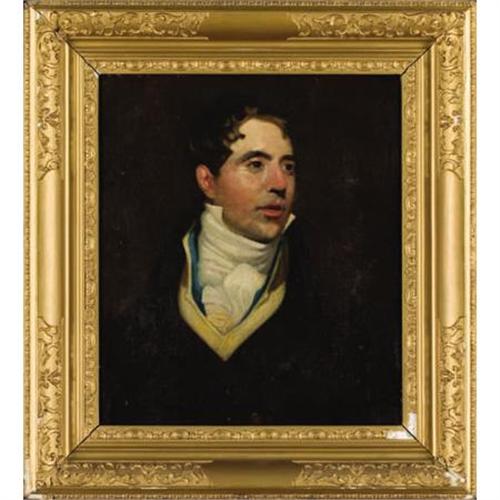 <B>FRENCH SCHOOL (18th Century)</B></I><BR><I>Portrait of a Gentleman</B></I><BR>Oil on canvas<BR>23 x 20 inches (58.4 x 50.8 cm)<BR> <BR>An attractive portrait of a gentleman outfitted in formal black coat and white shirt; possibly of Colonel Louis de Gouy, an officer in the army of King Louis XVI of France. Gouy died on the guillotine on July 23, 1794.<BR>