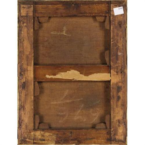 <B>FRENCH SCHOOL (19th Century)</B></I><BR><I>Le Petit Pierrot</B></I><BR>Oil on canvas<BR>13 x 9-7/8 inches (33.0 x 25.1 cm)<BR>Signed lower left with the symbol of a clover<BR> <B>Condition Report:</B> Craquelure, old frame abrasion, stretcher marks, canvas worn in the four corners and edges, 1/2 x 1-3/4 inch repair in the hat, and yellowed varnish <BR><BR><b>Shipping:</b> Framed - without Glass, Small (<a target="_blank" href="http://www.heritageauctions.com/common/shipping.php">view shipping information</a>)