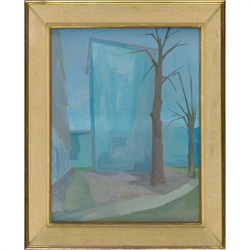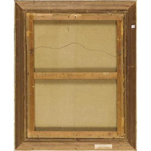 <B>FRENCH SCHOOL (20th Century)</B></I><BR><I>Maison Bleue</B></I>, 1969<BR>Oil on canvas<BR>25-1/2 x 19-3/4 inches (64.8 x 50.2 cm)<BR>Signed lower left: <I>NANQUETTE</B></I><BR> Signed, dated and titled on stretcher: NANQUETTE 69 MAISON BLEUE<B>Condition Report:</B> Original canvas, minor craquelure, otherwise good condition.<BR><BR><b>Shipping:</b> Framed - without Glass, Medium (<a target="_blank" href="http://www.heritageauctions.com/common/shipping.php">view shipping information</a>)