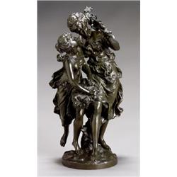 French School, Late 19th Century, Figural Group of Two Classical Women, Inscribed Math. Morea...