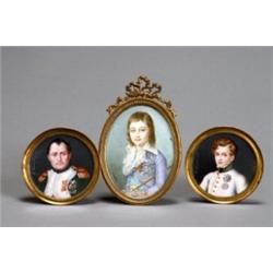 French School, Mid-19th Century, Group of Three Portrait Miniatures of Military Gentlemen, Th...