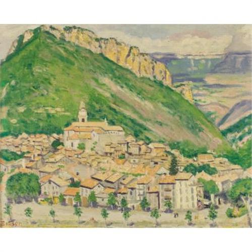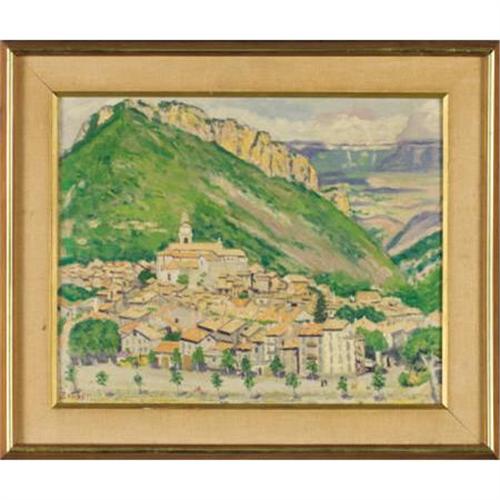 <B>FRENCH SCHOOL (20th Century)</B></I><BR><I>Montagne Sainte-Victoire</B></I><BR>Oil on artists board<BR>14 x 17-1/2 inches (35.6 x 44.5 cm)<BR>Signed lower left: <I>Berson</B></I><BR> <B>Condition Report:</B> Surface dirt, but otherwise good condition.<BR><BR><b>Shipping:</b> Framed - without Glass, Medium (<a target="_blank" href="http://www.heritageauctions.com/common/shipping.php">view shipping information</a>)
