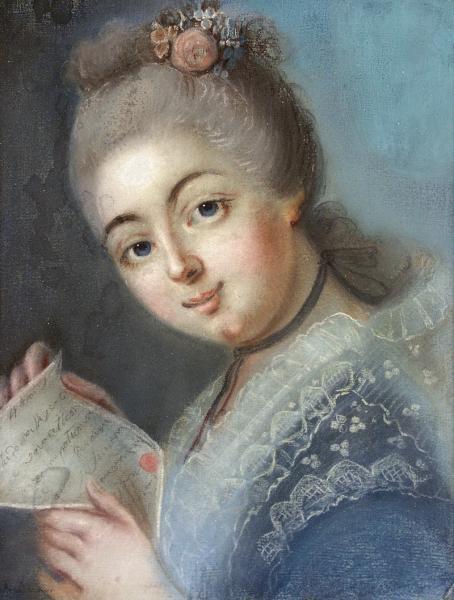 [19th century] PORTRAIT, WOMAN READING A LETTER pastel on paper laid on canvas 16 x 12.5 in. (40.6 x 31.8 cm) signed "H. Daumier"; signed & dated "1870" verso