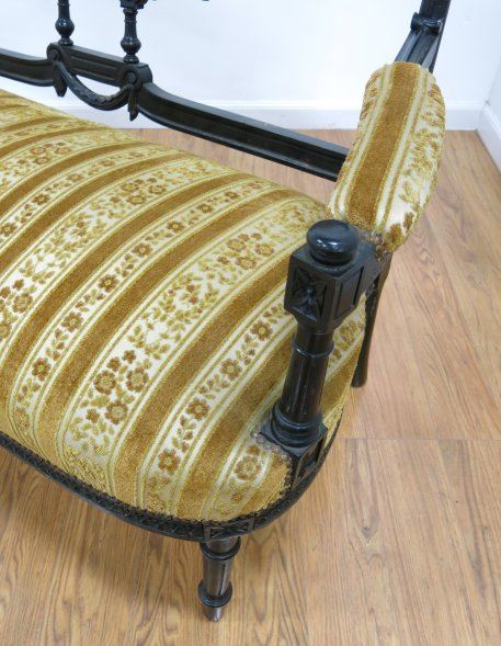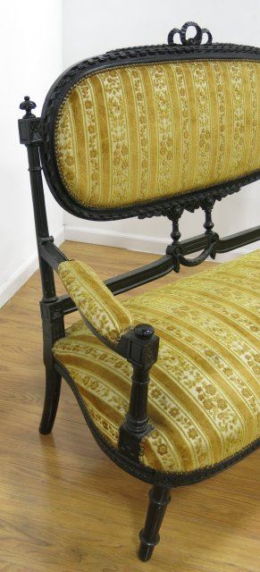 With yellow upholstery. Approx. 43 1/2" H x 53" W x 22" D. Good condition.