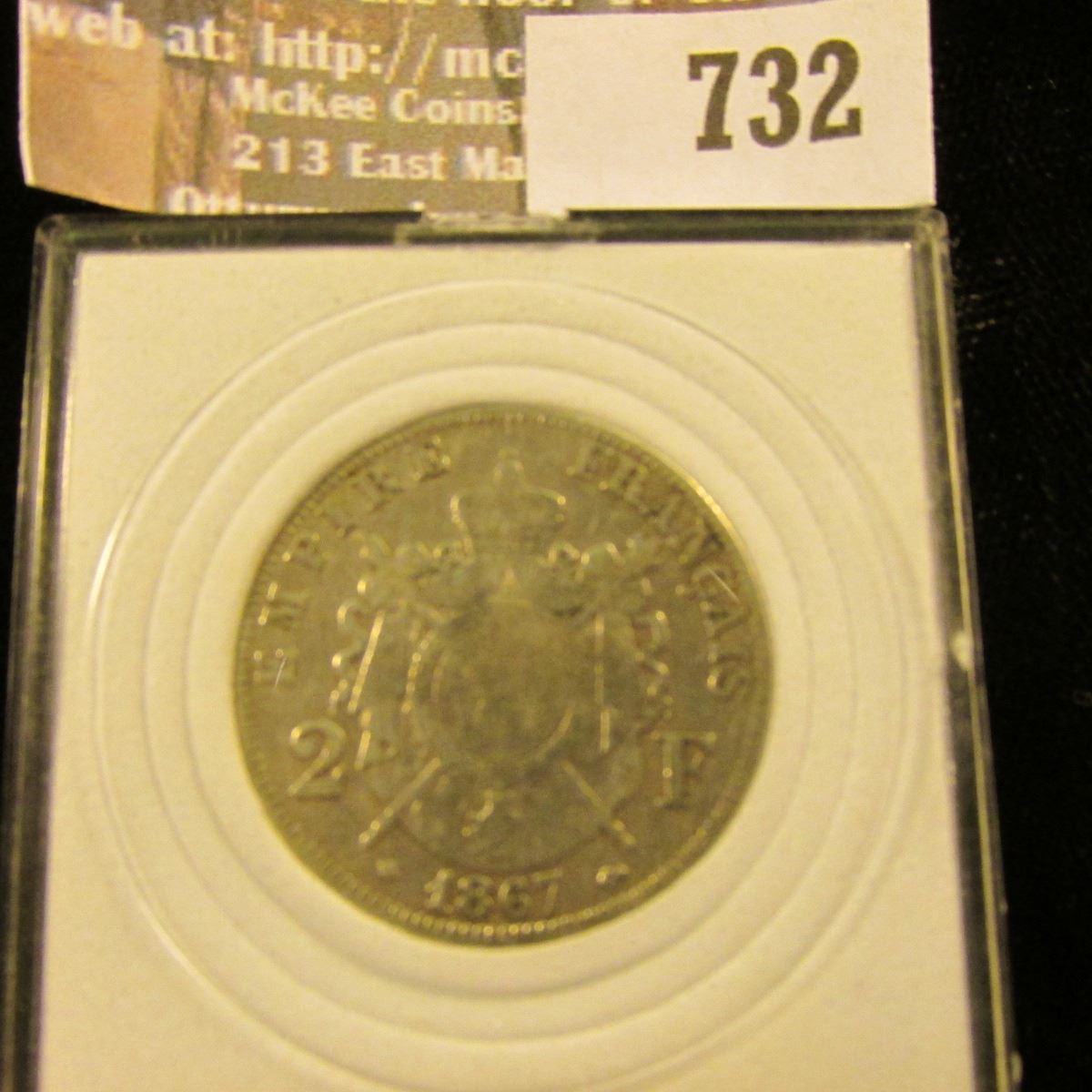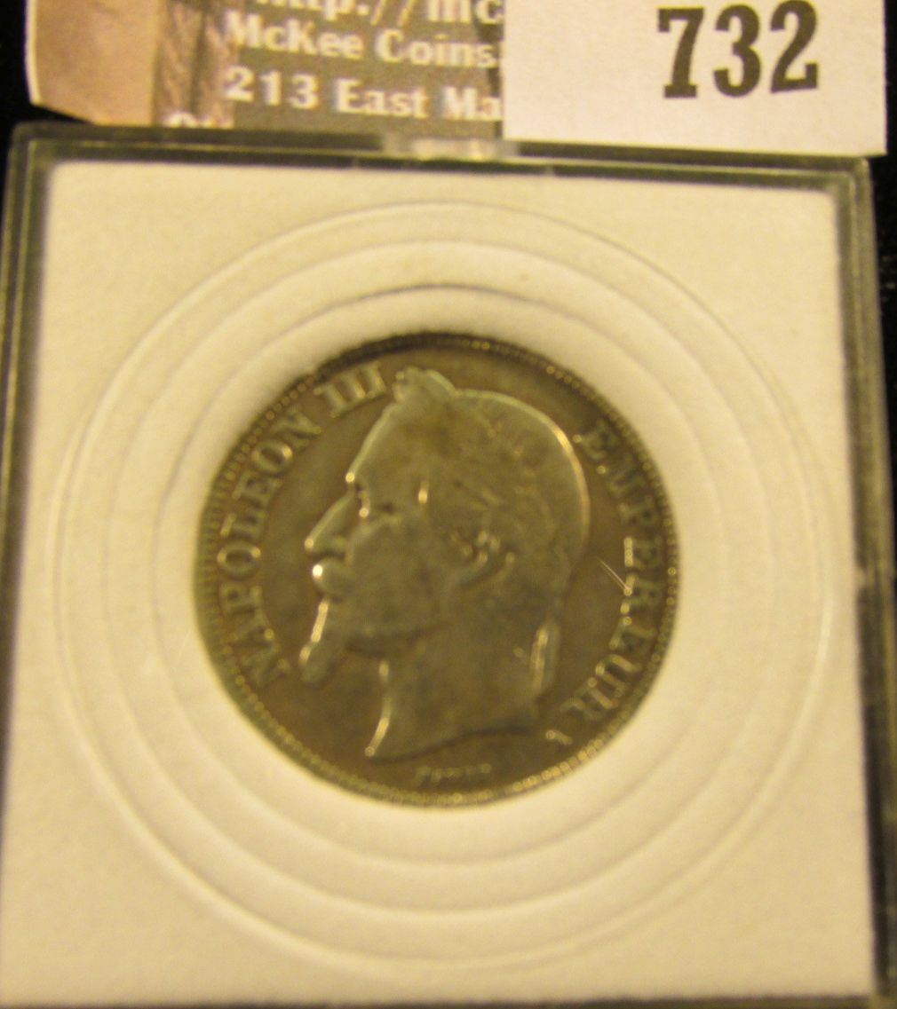 French Silver 2 Francs Coin Km Number 807.1. On The Front Is Emperor Napoleon The Second