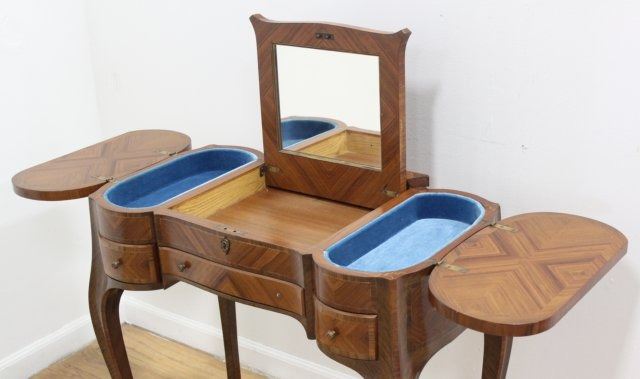 Approx. 28 1/2" H x 32 1/4" W x 17 1/4" D. From an Edgewater, NJ estate. Minor veneer loss. Missing a pull.