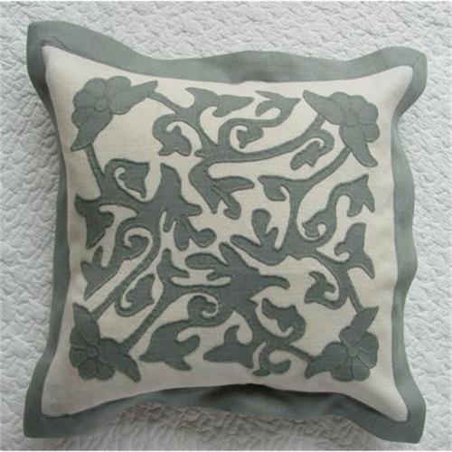 Decorative pillow cover with hand-stitched, applied contrasting fabric. Hand-made by Mandarino. Has zipper closure in the back. All materials are new, 100% cotton, and machine washable. Pillow filling not included. Please ask questions, request additional photos and shipping costs before bidding. <p>Measurements: 18 x 18" square. Also available in 16" and 20" square and special orders (these items are handmade and measurements are approximate). Please allow 10 days to fulfill order prior to shipping. Large orders may take longer to fulfill.