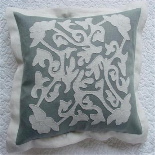 Decorative pillow cover with hand-stitched, applied contrasting fabric. Hand-made by Mandarino. Has zipper closure in the back. All materials are new, 100% cotton, and machine washable. Pillow filling not included. Please ask questions, request additional photos ans shipping costs before bidding. <p>Measurements: 18 x 18" square. Also available in 16" and 20" square and special orders (these items are handmade and measurements are approximate). Please allow 10 days to fulfill order prior to shipping. Large orders may require longer to fulfill.