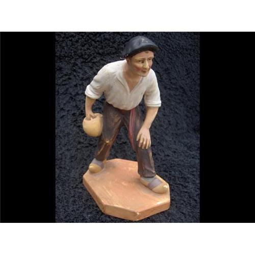 A delightful figure of a French Country Working Man complete with Sabots (clogs), Beret and carrying a basket with his lunch. Terrfic attention to detail on the body and especially the face showing wonderful ruddy cheeks assocaited with working outdoors. Signed to the base P. Dunand.