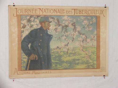 French WWI Poster, "Journee Nationale Des Tuberculeux Anciens Militaires", Artist-Levy Dhutmer (?), Printer-Devambez. Imp. Paris, 32 1/4" x 45", Condition – Good: Border Tears and Losses, Corner Creasing, Staining; Linen Backed,