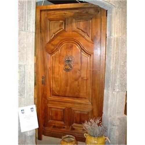 This solid walnut wood door from France has been wonderfully constructed. The locking system has three locks with one turn, lever to activate a dust guard at the bottom of the door, and the front iron door knocker activates opening the door by turning the knocker.