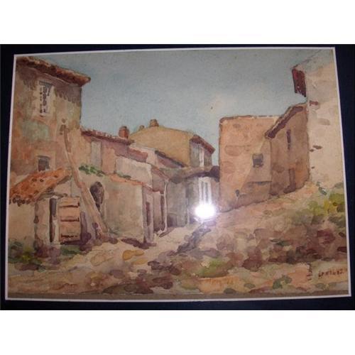 </font></strong>A delightful French Watercolour by the artist F Peti, known for landscapes and dating from 1903 of a Village probably in Southern France. Original painting but has been reframed.</font>