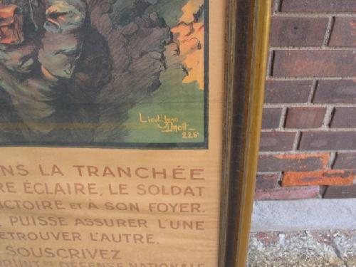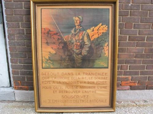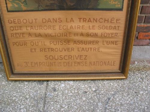 French World War I color lithograph poster -fund raising, "Standing in the Trench...Subscribe!" rare, good condition, 44 1/2" by 31".