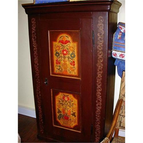 Exceptional ANTIQUE Hand-painted BONNETIERE (Armoire one door) from Alsace, France. This piece was made of pine by a cabinet maker from Alsace (Eastern France) in the 1870's.